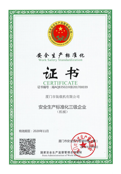 廈裝安全三級(jí)標(biāo)準(zhǔn)化證書(shū)